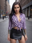 Imagine: chat sex ro .jpg o femeie intr-un top albastru si fusta in carouri sta pe un blat cu picioarele incrucisate, tricoul bine tras, seducatoare. o holograma a frumusetii elizabeth polunin, 1 fata, sani, par brunet, decolteu adanc, crop top, buze senzuale, par lung cascand. privirea ei se intoarce catre privitor cu senzualitate. fuste plisate in carouri completeaza tabloul erotic.