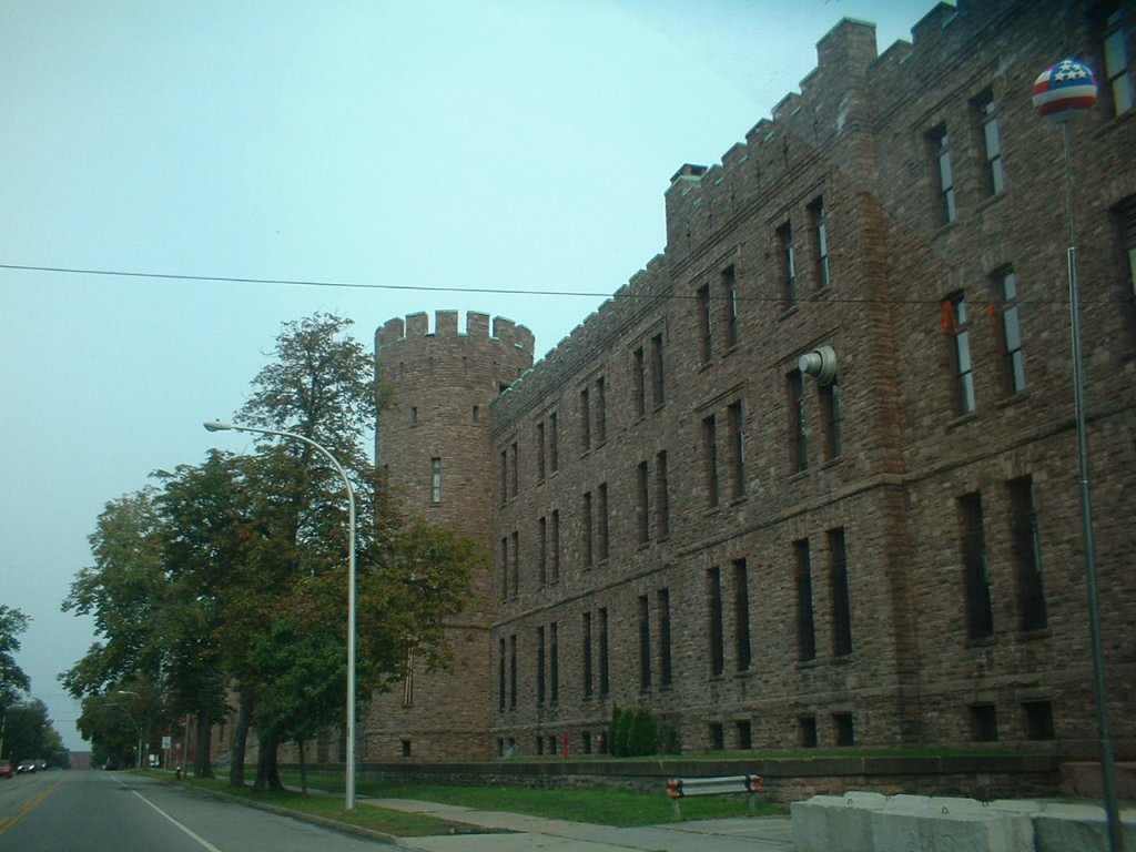Ilustratie: escorte tl .jpg o cladire impunatoare din caramida, cu un turn ce domina silueta, se afla in fata unei strazi luminate de un stalp de luminat. In lumina zilei, contururile sale robuste si detaliile arhitecturale ies in evidenta. In apropiere, copaci adauga o nota naturala, creand un peisaj urban vibrant si plin de viata.