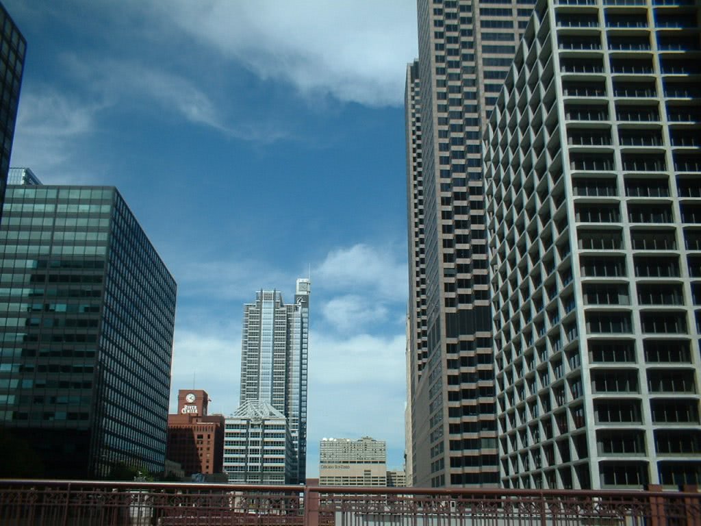 Imagine: onlinw chat .jpg un pod elegant traverseaza un peisaj urban vibrant, in fata unor cladiri inalte si a unui turn cu ceas, sub cer albastru senin. In prim-plan, o structura de caramida si un zid de plasa se impletesc printre cladiri moderne si un castel stilizat. atmosfera este incarcata de luminile orasului, iar norii adauga o nota misterioasa unei scene urbane exotice.