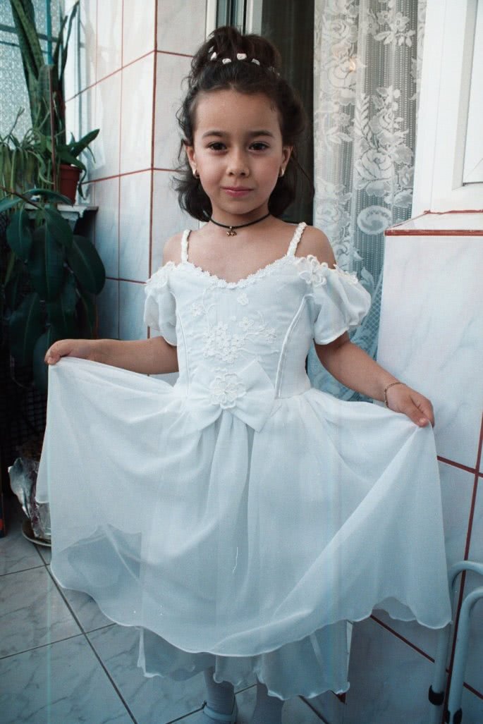 Foto: mari mature .jpg o fetita in rochie alba, cu umerii goi, zambeste seducator, in timp ce isi ridica usor voalul de pe fusta. In coltul camerei se afla o planta verde, iar tavanul si podeaua sunt acoperite cu placi ceramice. privirea ei misterioasa si gesturile jucause emana o senzualitate subtila si captivanta.