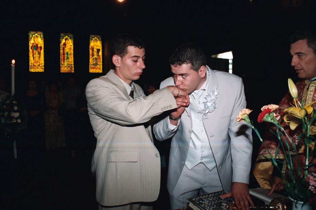 Fotografie: escorta sani mari .jpg doi barbati in costume elegante isi leaga cravata cu pasiune, in timp ce altii se aduna in jur, intr-o atmosfera de nunta sacralizata. fiecare detaliu devine un joc seducator: barba dese, plete negre si zambete enigmatice sub vitralii colorate. o scena plina de dorinta, unde eleganta intalneste erotismul subtil, creand o imagine intensa si captivanta.