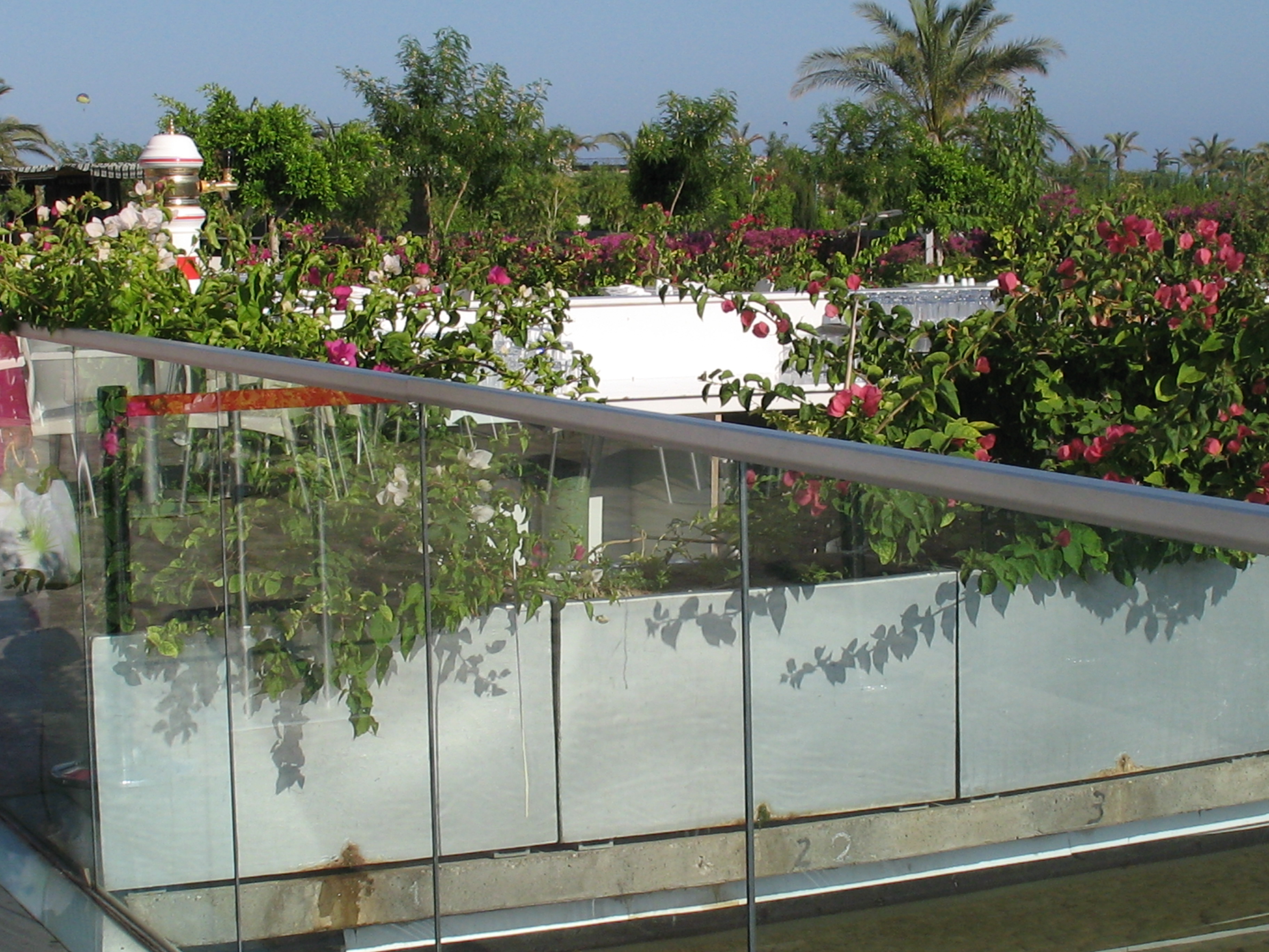 Ilustratie: ciorapi portjartier rosii .jpg o balustrada de sticla acoperita cu flori delicate, care se impletesc erotic printre petale, in timp ce in fundal se zareste o cladire alba si un gard similar. natura exuberanta imbina frumusetea florilor, frunzisul luxuriant si soarele cald, creand o scena incantatoare si senzuala in aer liber.