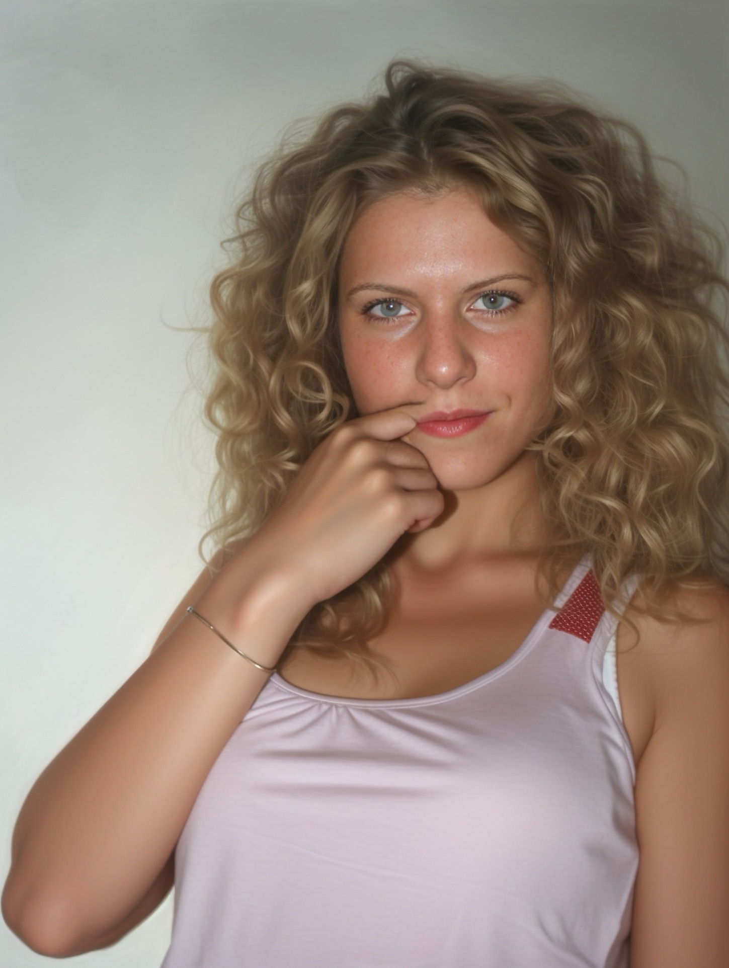 Ilustratie: angajari soferi sibiu .jpg o femeie cu par blond si ochi albastri seducatori pozeaza provocator, sprijinindu-si capul pe mana, cu buzele moi si privirea intensa ce te captiveaza. parul sau ondulat si pieptanat perfect dezvaluie curbe erotice, in timp ce bijuteriile adauga un aer sofisticat. corpul ei voluptuos, acoperit doar de un top lejer, iti starneste fantezii pasionale intr-un decor gri subtil.