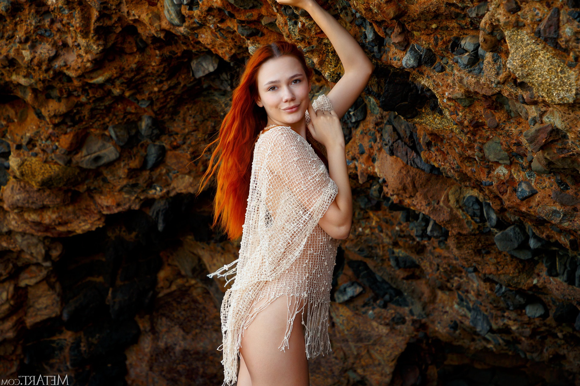 Fotografie: photo gay .jpg o femeie cu par rosu stralucitor, imbracata in rochie eleganta si bijuterii delicate, se afla intinsa pe sol, intr-o pozitie arabesque, cu bratele ridicate si piciorul sus. frunzele de toamna cad in jurul ei, iar privirea seducatoare te cucereste pe loc. pielea sa catifelata si buzele pline adauga un farmec irezistibil scenei plina de pasiune.