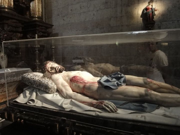 Poza: how to use penis pump .jpg o barbat decedat, incapsulat intr-un caz de sticla, se afla in centrul unei expozitii muzeale. In jur, o statuie a unui om intins pe pat, evocand arta gotica si barocul flamand. detaliile realiste ale pielii si atmosfera misterioasa adauga un aer erotic subtil scenei, in timp ce scarile din fundal completeaza imaginea cu o nota de eleganta intunecata.