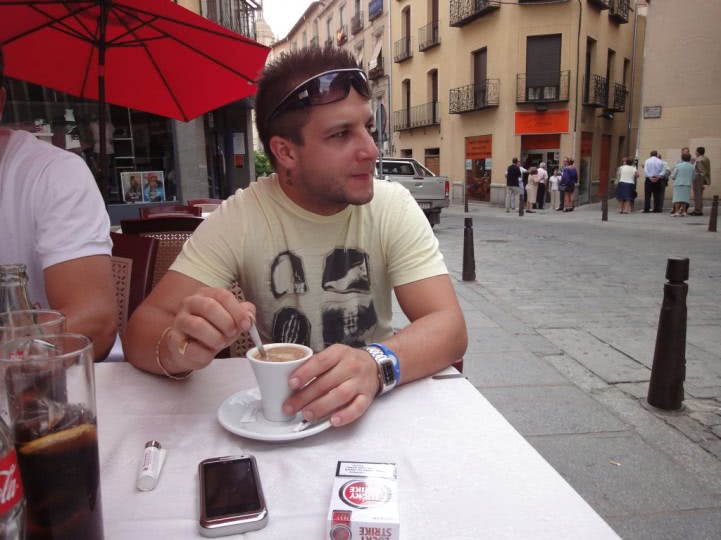 Poza: www romania ro .jpg un barbat seducator, asezat la masa cu o ceasca de cafea aburinda in fata si telefonul aproape, emana un aer misterios. Il completeaza un bratara delicata la incheietura si un ceas elegant. In jur ploua incet, sub umbrela rosie transparenta, creand o atmosfera intens erotica si plina de farmec. privirea lui captivanta te invita intr-o lume secreta si pasionala.
