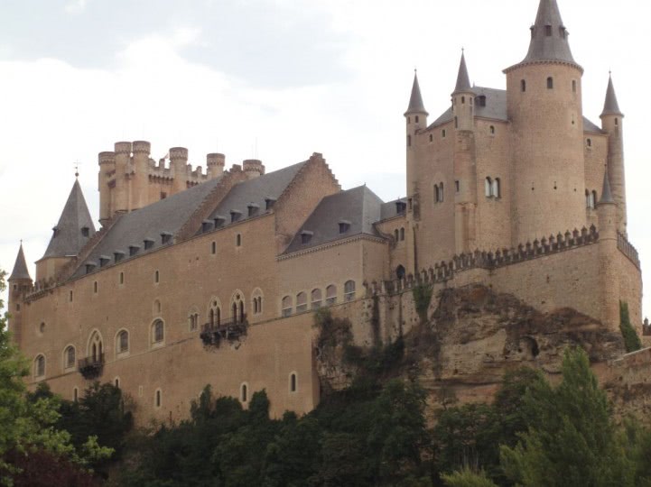 castel impunator cu un turn inalt, ce se ridica spre cer, si un ceas stralucitor pe fatada. Imprejmuit de copaci dese si vegetatie luxurianta, scena medievala dezvaluie arhitectura romanica detaliata. lumina zilei accentueaza frumusetea naturalului: poduri, case intime printre frunzis, iar cerul senin adauga o nota magica acestei privelisti fara prezenta omului.