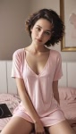 Fotografie: 2005 12 11 21 32 e3QPFItwKW .jpg o femeie seducatoare, purtand un top albastru si o fusta rosie cu buline roz, isi etaleaza picioarele fine si sanii plini. cu bratele ridicate si parul blond stralucitor, se uita direct la privitor, provocatoare. fara lenjerie, trupul ei dezvaluie delicat zona intima, ademenitoare in interiorul unei bucatarii intime.