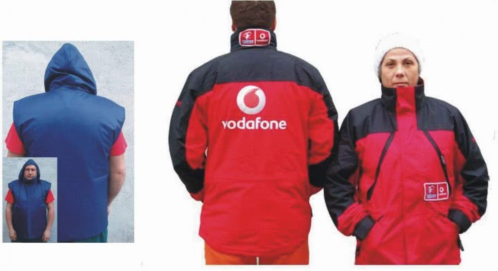 Imagine: www sexgratis .jpg un barbat injambonat intr-o geaca rosie si neagra, altul in albastru si rosu cu gluga, amandoi cu aspect de techwear futurist. unul are cap ras si mustata fina, mainile in buzunare, emanand o senzualitate subtila. pe fundal alb simplu, scena pare digitalizata, plina de mister si dorinta ascunsa.