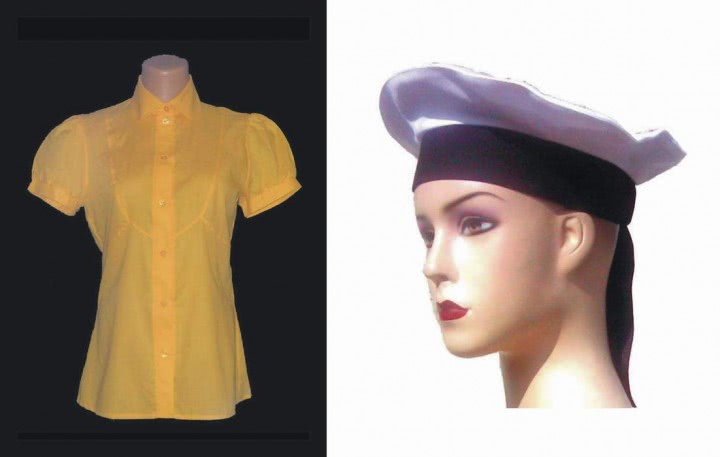Ilustratie: public24 cj .jpg o cap de manechin purtand un tricou galben si o palarie alba cu banda neagra, cu gatul infasurat intr-un colier negru. buzele rosii si buzele usor deschise dezvaluie o privire seducatoare, in timp ce parul negru si ochii intunecati adauga mister. fundal simplu, accentuand farmecul sofisticat si erotic al scenei.