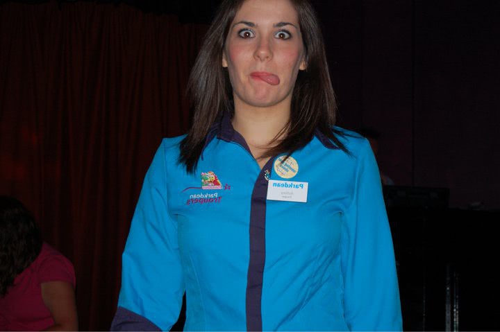 o femeie seducatoare in camasa albastra si cravata, facand o expresie jucauasa cu limba scoasa, atragatoare si sigura pe ea. In fundal, se zareste o silueta misterioasa. privirea ei iti intampina privitorul, buzele apetisante si ochii intunecati te captiveaza complet. corpul ei superior dezvaluie forme tentante intr-o imagine plina de erotism subtil.