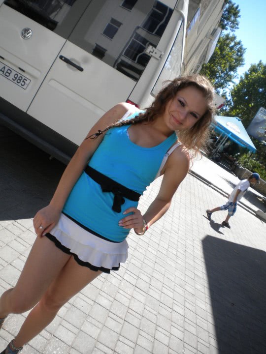 Imagine: cobeco powder lubricant .jpg o femeie seducatoare, purtand un top albastru si o fusta alba, sta provocator in fata unui autobuz pe o strada de caramida. pielea sa blonda straluceste sub soarele zilei, iar bratara i accentueaza bratele delicate. In jur, ziduri de caramide si garduri metalice creeaza un decor urban plin de farmec erotic, invitand la priviri indiscrete.
