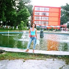 Poza: dama de lux brasov .jpg o femeie in bikini sta pe marginea unei cazi cu picioarele incrucisate si capul sprijinit pe mana, arabesque, uda. o fotografie polaroid, detaliind ochii maro, zambetul seducator si lipsa lenjeriei intime. fusta roz scoate in evidenta formele ei apetisante. un decor de baie elegant completeaza tabloul erotic: gresie si faianta, toaleta si un gard metalic care adauga o nota de provocare.