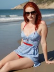 Imagine: dispozitiv pentru clisma .jpg o femeie seducatoare in bikini alb, ingenuncheata pe malul marii, cu picioarele incrucisate si trupul aplecat peste zidul de piatra. pielea ei alba ca marmura contrasteaza cu oceanul albastru si cerul senin. buzele rosii si zambetul provocator ii evidentiaza frumusetea naturala, iar blondul lung si ochii albastri adauga o nota de mister acestei scene estivale pline de erotism subtil.