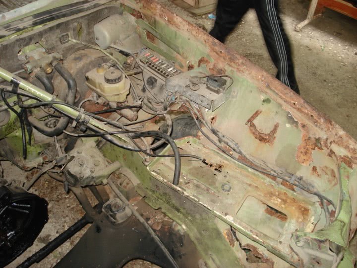 Foto: chat random free .jpg o masina ruginita, cu motorul spart si firele dezordonate in portbagaj, sta abandonata pe terenul acoperit de praf. In jur, o silueta umana se plimba nonsalant, in timp ce in fundal un soldat in uniforma militara paseste printre resturi de vehicule blindate. atmosfera e incarcata de fum dens si noroi, evocand un peisaj post-apocaliptic plin de tensiune si mister.
