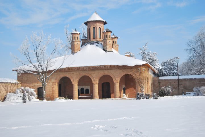 Ilustratie: romania women lithuania women .jpg o biserica cu turn si clopotnita, acoperita de zapada stralucitoare, se inalta printre brazi si arbusti. cerul albastru intens, presarat cu nori pufosi, completeaza peisajul de iarna. In tainic decor montan, o crenguta goala dezvaluie frumusetea rece a sezonului, ademenind privirea intr-un dans de contraste si mistere inghetate.