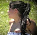 o femeie seducatoare, cu sanii dezgoliti si buzele rosii, sta intinsa pe o canapea de catifea. parul lung ii acopera partial fata, iar privirea ei fierbinte te hipnotizeaza. lumina difuza pune in evidenta formele apetisante ale corpului ei sculptural. o scena incitanta ce te lasa cu dorinta de mai mult.