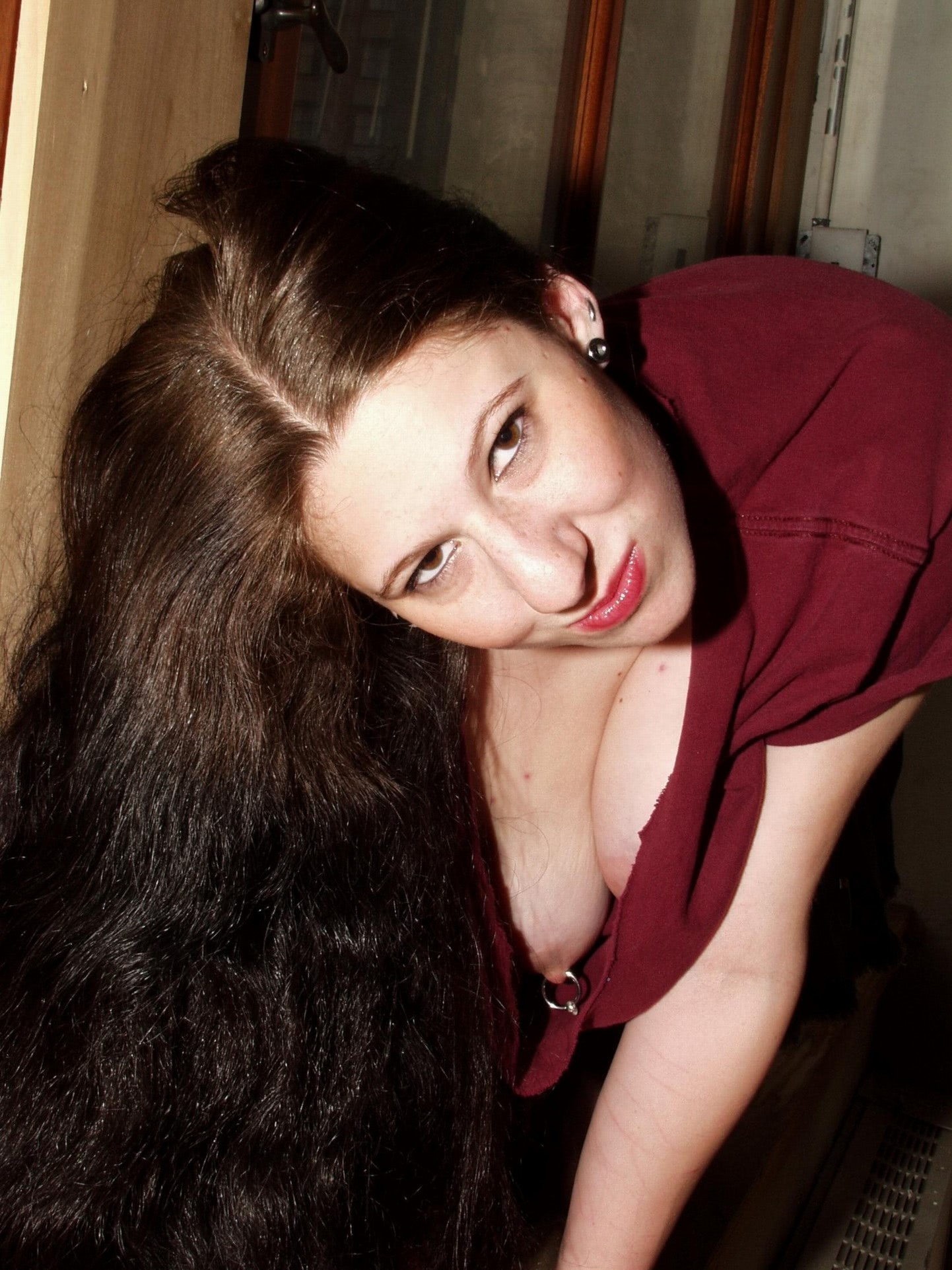 o femeie cu par lung zambeste catre camera, sprijinindu-se de manerul unei usi, intr-o poza transgresiva. are parul negru lung si poarta bijuterii. portretul personajului aramenta dianthe vail surprinde o fata cu sanii vizibili, detaliu erotic subtil. zambetul ei realist atrage atentia asupra piercing-urilor multiple: pe buze, sprancene, nas si urechi. o imagine provocatoare ce emana senzualitate si mister.