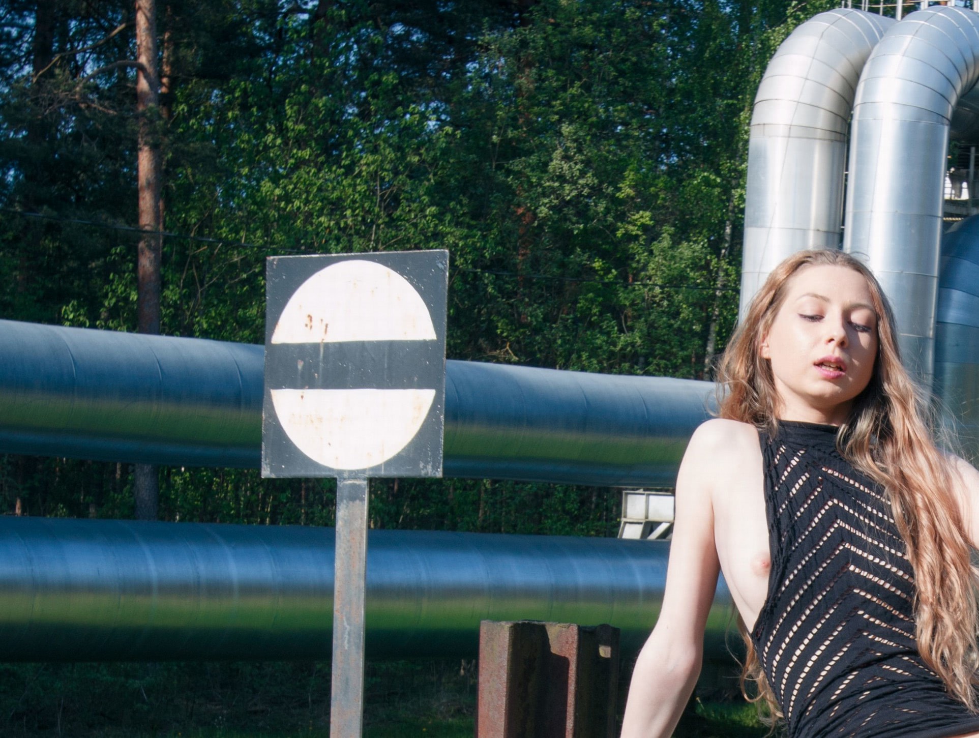 Poza: playboy downblouse upskirt oops voyeur sexy .jpg o femeie seducatoare, imbracata intr-o rochie neagra ce evidentiaza formele voluptoase, sta langa un semn si tevi, in lumina noptii. parul lung si castaniu ii cade pe umeri, iar privirea inchisa tradeaza placere intensa. In fundal, natura si orasul se contopesc intr-un peisaj erotic incarcat de mister si dorinta.