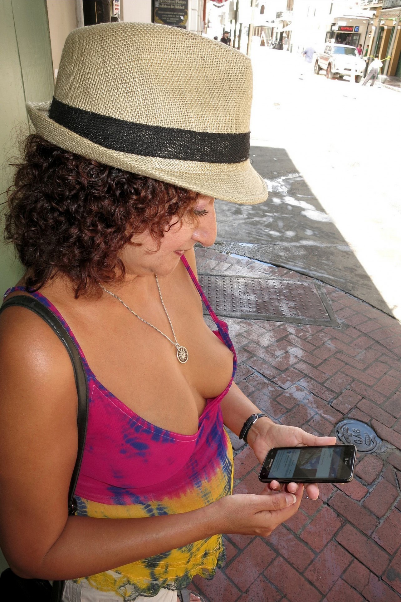 o femeie seducatoare, purtand o palarie eleganta, zambeste strengare in timp ce se uita la telefonul mobil. corpul ei dezvaluie forme voluptuoase prin rochia de plasa fina, iar privirea jucausa si atitudinea sigura te provoaca sa visezi. Intre zidurile de caramizi si pe fundalul orasului agitat, ea isi etaleaza farmecul erotic cu fiecare gest senzual.