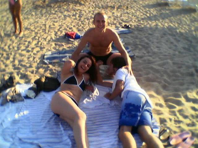 Fotografie: anuntul com .jpg un grup de oameni se intinde pe plaja, adunati strans pe un prosop de nisip. femeia, in bikini seducatori, isi intinde trupul bronzat, iar fundul perfect conturat atrage priviri. In jur, lumini tremurande si focuri de artificii creeaza o atmosfera incendiara. atmosfera vibranta si senzualitate purtata de valurile marii si soarele arzator.