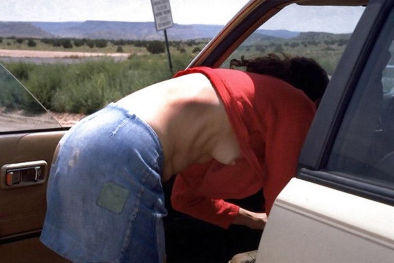 o femeie seducatoare se apleaca peste usa masinii, in desertul arzator, cu o privire provocatoare. Imbracata in denim ajustat, trupul sau frumos conturat iese in evidenta, iar lumina calda accentueaza fiecare curba erotica. imagine realista si intima, intr-un cadru plin de pasiune si dorinta ascunsa.