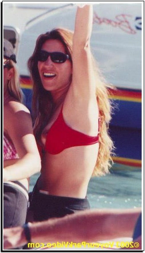 o femeie in bikini flutura catre multime dintr-o barca, admirata de o alta femeie seducatoare in acelasi costum. corpul ei dezvaluie aripile subtiri ale axilei si un abdomen ferm, in timp ce buzele rosii si machiajul subtil adauga un farmec irezistibil. privirea intensa si ochelarii de soare completeaza imaginea unei scene pline de erotism subtil.