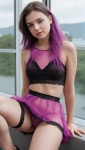 o femeie intr-o camasa neagra si chiloti negri pozeaza intr-o camera cu un perete alb. detaliile picante includ par brun, buze senzuale, par lung si privire seducatoare spre privitor. o fotografie artistica ce emana erotism si stil, capturata de dom qwek.
