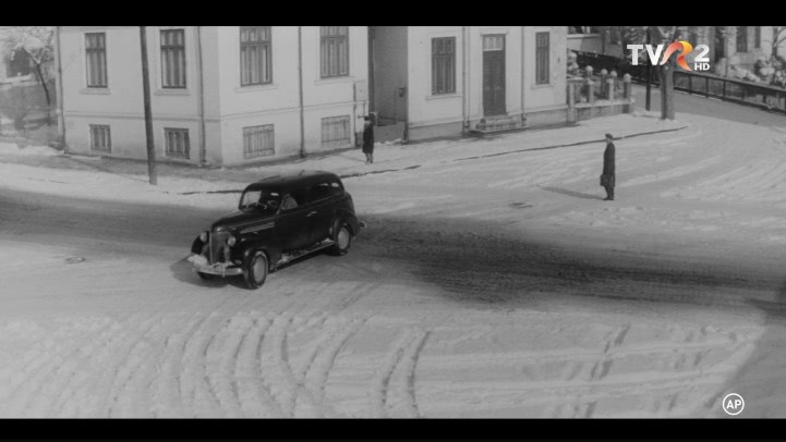 Imagine: vlcsnap 2019 12 30 20h52m36s065 .png . o masina strabate o strada acoperita de zapada, aliniata langa un zgarie-nori impunator. pe trotuar, o silueta feminina seducatoare isi intinde parul lung si matasos, cu privirea provocatoare. contrastul intre alb si negru amplifica atmosfera erotica, iar prezenta ei emana mister si dorinta in aerul rece al orasului.