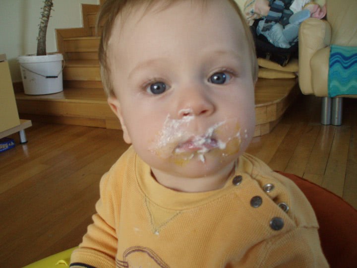 Fotografie: ero long power .jpg un copil sede pe un scaun, cu mancare in gura, iar in fundal se zareste alt bebelus. privirea sa albastra si buzele usor rosii ies in evidenta, intr-o scena fotorealistica plina de intimitate. parul scurt si atmosfera calda a interiorului completeaza imaginea senzuala si captivanta, evocand o senzatie de dorinta subtila si fragilitate.