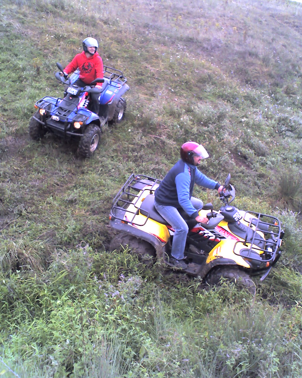 Ilustratie: 08 09 07 1454 .jpg doi tineri curajosi se aventureaza pe atv-uri, invaluiti de iarba verde si flori colorate. un caine jucaus sta relaxat pe spatele quad-urilor, in timp ce baietii poarta palarii si haine casual, explorand natura salbatica. atmosfera e plina de energie si aventura, cu detalii erotice subtile care amplifica tensiunea dintre ei.