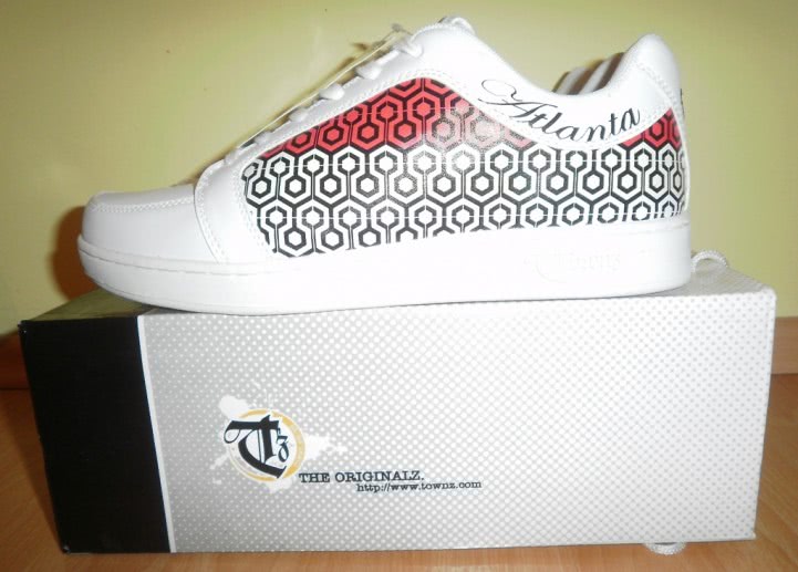 Imagine: id uri fete lugoj .jpg pantof alb cu design rosu si negru, asezat pe o cutie pe podea de lemn, langa perete. In fundal, un model checkered si polka dot creeaza o atmosfera vibranta. detaliile haltone adauga textura misterioasa, in timp ce lumina subtila accentueaza eleganta si senzualitatea acestui decor captivant, plin de farmec si rafinament.