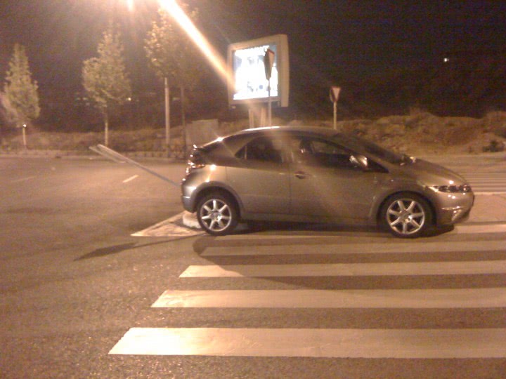 Foto: grase frumoase .jpg o masina parcata in noapte, luminata slab, cu un billboard in fundal ce striga a€˛dona€™t walk, les automatistesa€¯. atmosfera e incarcata de mister si dorinta ascunsa. caroseria lucioasa dezvaluie forme seducatoare, iar linistea noptii amplifica intimitatea momentului. un peisaj urban plin de erotism subtil si promisiuni nerostite.