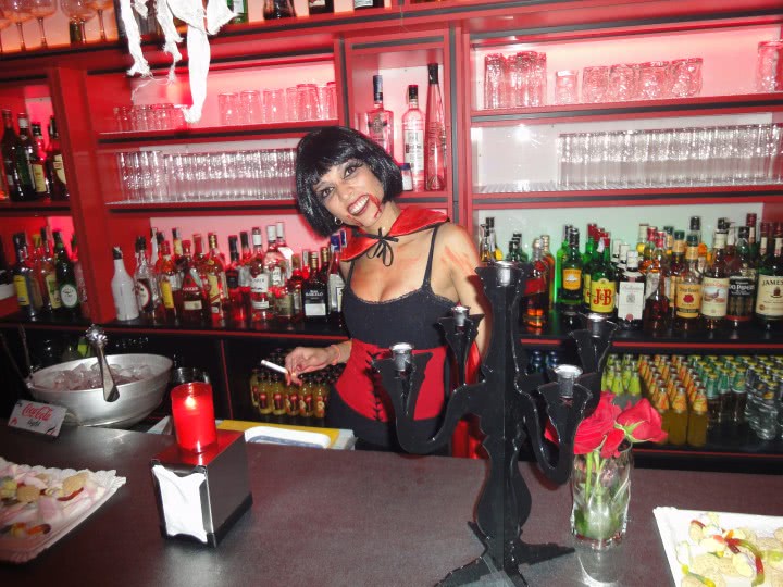 Foto: lesbion chat .jpg o femeie seducatoare, imbracata intr-un costum rosu vibrant, sta provocator in spatele barului. In mana sa tremura un cutit, iar in jurul ei zboara sticle de bauturi alcoolice si lumini neon stralucitoare. parul negru ii cade pe umeri, iar privirea-i intensa atrage ca un magnet. atmosfera urbana si vibe-ul erotic completeaza scena plina de dorinta si mister.