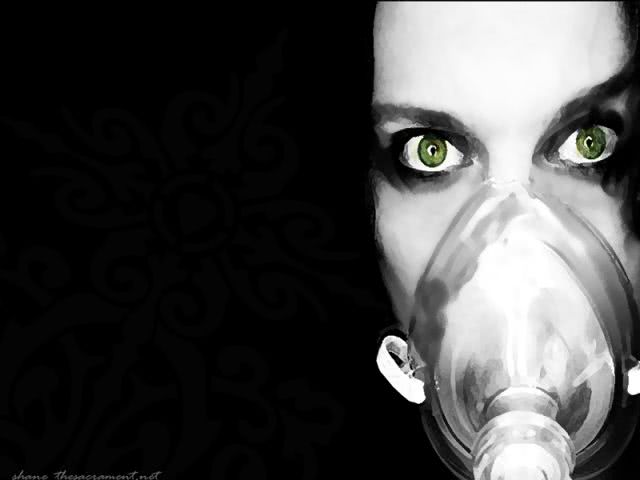 Ilustratie: 999 masaj .jpg o femeie cu ochi verzi seducatori, purtand o masca de gaz, privindu-te direct cu intensitate. fundal negru cu un design floral gotic si fum misterios in jur. privirea ei captivanta si ochii stralucitori te atrag intr-un univers erotic plin de senzualitate, accentuat printr-un stil artistic aerograf si culoare selectiva care amplifica frumusetea sa misterioasa.