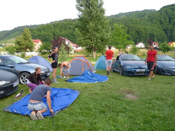 Foto: ii frumoase .jpg un grup de oameni monteaza corturi pe o pajiste insorita, in timp ce cativa barbati stau relaxati pe iarba. femei frumoase, cu parul rosu si brunet, se plimba seducator printre masini si vehicule militare. atmosfera este vibranta si plina de energie, iar privelistea naturala accentueaza intimitatea momentului pasional petrecut in aer liber.