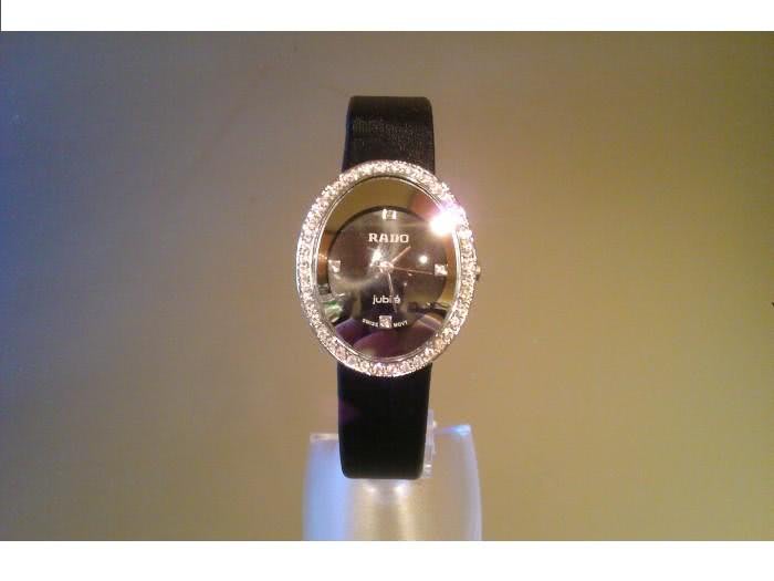 Imagine: matrimonial timis .jpg o ceas elegant, incadrat intr-un suport, cu un bezel plin de diamante stralucitoare. fundal alb si o lumina albastra subtila amplifica rafinamentul, in stil art deco. holograma delicata adauga un aer misterios, iar atmosfera seducatoare te atrage in lumea luxului si a pasiunii fara limite.