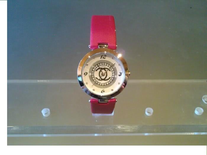 Fotografie: agencia matrimonial b2 .jpg o infatisare seducatoare: un ceas cu banda roz, asezat pe o etajera de sticla decorata cu puncte albe, iar in jurul incheieturii, o banda rosie intensa. imaginea transmite senzatii erotice subtile, accentuate de reflexii si detalii delicate precum picaturi de apa si bule aeriene, creand o scenografie cosmica plina de mister si pasiune.