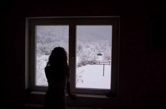 o femeie seducatoare, cu parul lung si ondulat, sta in fata ferestrei, admirand peisajul acoperit de zapada. lumina slaba a interiorului contrasteaza cu gerul iernii, accentuand senzualitatea siluetei sale. privirea ei misterioasa se pierde in lumea alba si rece din afara, creand o atmosfera intens erotica si plina de dorinta ascunsa.