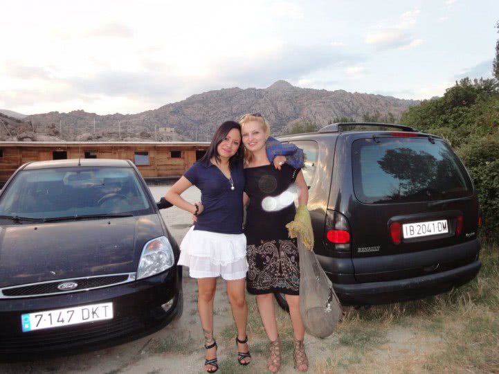Fotografie: durex real feel gel .jpg doua femei seducatoare stau langa un automobil negru, intr-un peisaj montan sub cer albastru. fiecare isi etaleaza formele voluptoase, cu picioare dezvelite in sandale si rochii albe ce accentueaza curbele senzuale. privirea lor intensa si pozitiile provocatoare creeaza o atmosfera plina de dorinta, intr-un decor natural si vibrant.