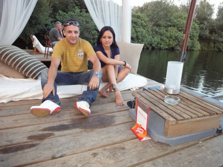 Imagine: matrimoniale satu nare .jpg un barbat si o femeie seducatoare stau pe ponton langa lac, cu un cabanuta in fundal. ea are parul negru, poarta un tricou dezgolit, pantaloni stramti si pantofi fara sireturi. el e relaxat, zambind subtil, cu bratari si ceas la mana. amandoi sunt desculti, iar privirea lor plina de dorinta se intalneste peste suprafata apei cristaline.
