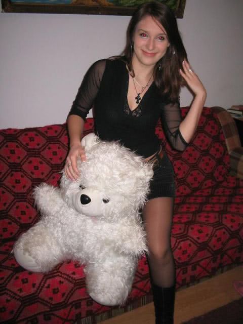 Foto: boddo chat .jpg o femeie seducatoare, imbracata intr-o camasa neagra si ciorapi eleganti, tine strans in mana un urs de plus alb impozant. parul lung si negru ii cade pe umeri, evidentiind frumusetea ei naturala. In jurul gatului poarta o bijuterie rafinata, iar privirea seduce cu buzele pline si zambetul misterios. atmosfera intima este intensificata de detalii subtile si farmecul sau inconfundabil.