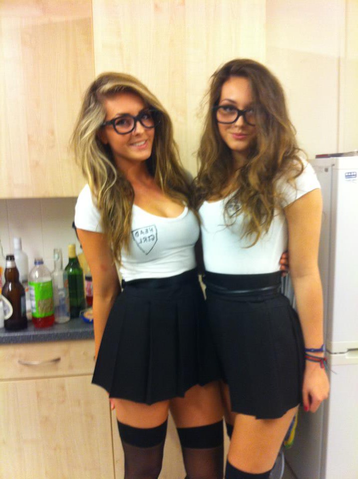 doua femei seducatoare, in fuste scurte si ciorapi pana la genunchi, se relaxeaza intr-o bucatarie intima. fetele au par blond si ochi incantatori, iar formele lor voluptoase ies in evidenta sub rochitele mini. privirea lor jucausa si buzele apetisante completeaza scena plina de erotism subtil.