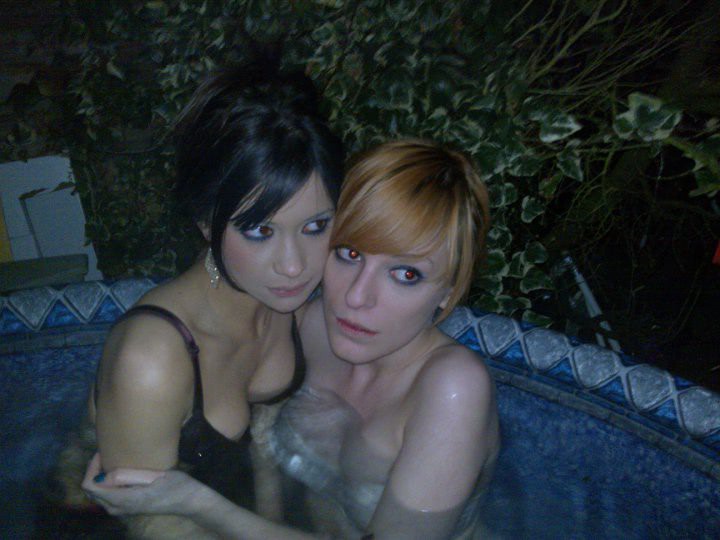 doua femei seducatoare se relaxeaza in jacuzzi, invaluite de vegetatie nocturna. una priveste seducator catre camera, cu buze rosii si ochi caprui, dezvaluind un decolteu apetisant si par negru scurt. corpurile lor par partial scufundate in apa cristalina, iar detaliile eroticea€”sani voluptuosi, pubis ascuns printre frunze si accesorii stralucitoarea€”adauga o nota transgresiva acestei scene luxuriante.