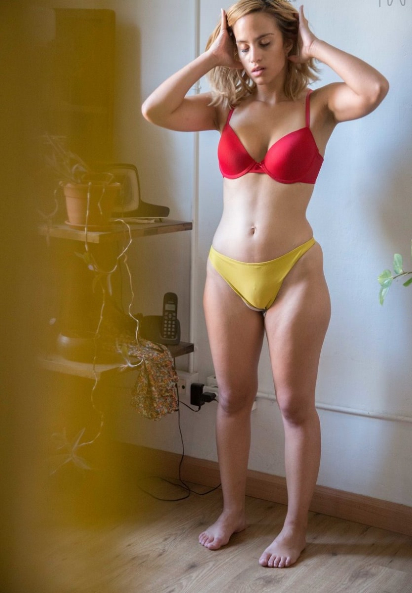 Fotografie: www matrimoniale ploiesti .jpg o femeie seducatoare, in bikini rosu si galben, sta cu incredere intr-o camera intima. cu pielea bronzata, bustul generos si decolteul atragator, isi evidentiaza formele voluptoase. pielea sa neteda si buzele senzuale completeaza imaginea intensa a momentului plin de dorinta.