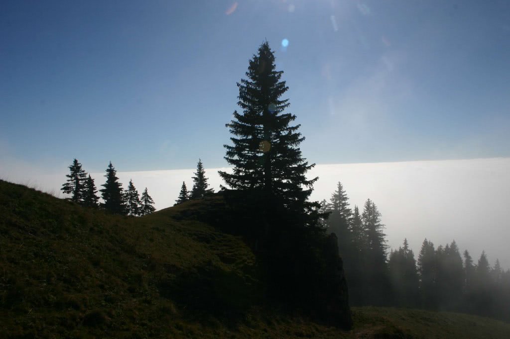 Foto: fete babadag .jpg sub soarele palid, un copac gol sta pe deal, invaluit de ceata volumetrica si luminat delicat prin razele sale. frunzisul deasa se ascunde printre nori, iar peisajul natural te imbie la visare. In departare, muntii impunatori si lacul linistit completeaza scena magica a naturii pure, fara prezenta omului.