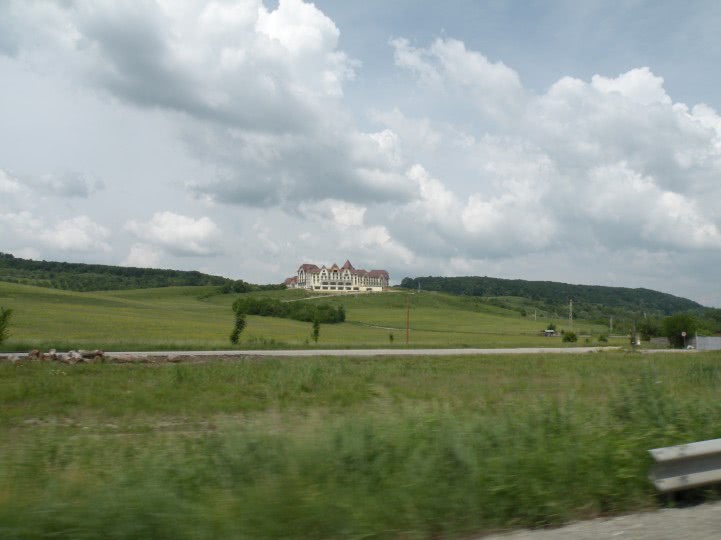 Poza: chat fere .jpg o casa impozanta pe un deal, cu o sosea ce traverseaza pe langa ea, unde o masina pasioneaza in zbor. cer albastru intens si nori jucausi in fundal, iar peisajul dezvaluie campuri fertile, paduri dense si lacuri stralucitoare. In departare, munti impunatori completeaza scena idilica a naturii pure.