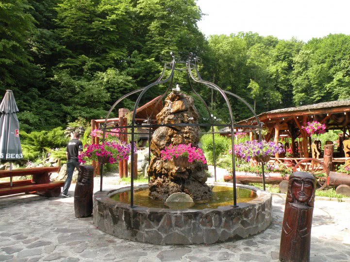 Imagine: spray pro .jpg o fantana delicata, inconjurata de flori parfumate, se afla in centrul unui parc fermecator. In fundal, banci si mese invita la relaxare, iar un foisor plin de flori adauga farmec scenei. o statuie eleganta si arhitectura rafinata completeaza peisajul idilic, creand o atmosfera intima si plina de pasiune sub lumina zilei.
