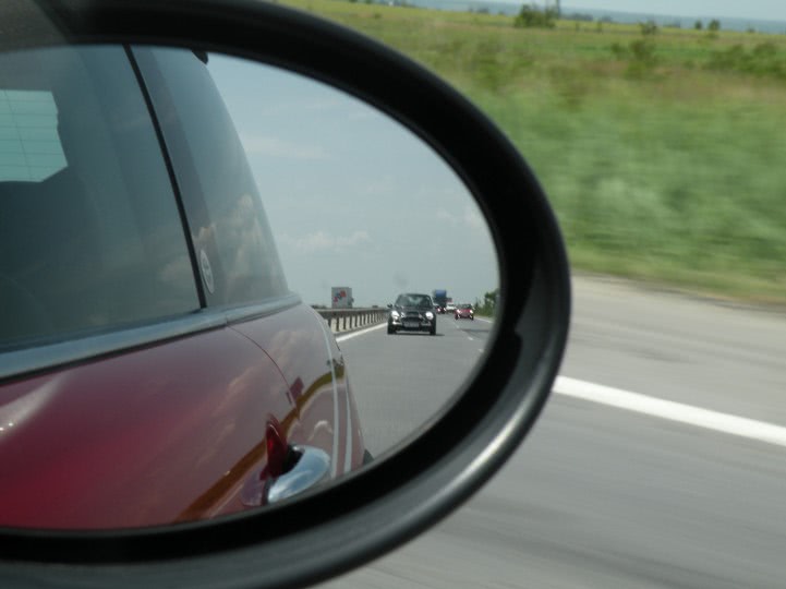 Foto: super miniet .jpg privind in oglinda retrovizoare, se zareste soseaua intinsa si o masina apropiindu-se cu repeziciune. In reflectoare, contururile unei siluete seducatoare cu par lung si palarie misterioasa ies in evidenta, intr-un joc de lumini si umbre ce amplifica atmosfera intensa si plina de dorinta.