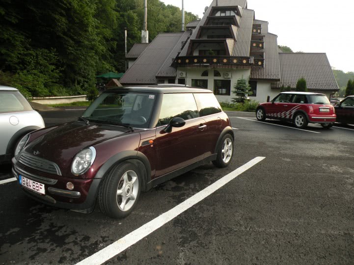 Ilustratie: stapana claudia .jpg masina mini cooper bordo, parcata in parcarea langa o cladire cu turn, surprinsa intr-o fotografie cu efect de tilt-shift. caroseria lucioasa ascunde forme seducatoare sub lumina soarelui. In jur, natura salbatica si frunzele fosnitoare adauga un aer misterios, accentuand farmecul subtil al siluetei cochete si atragatoare a vehiculului.